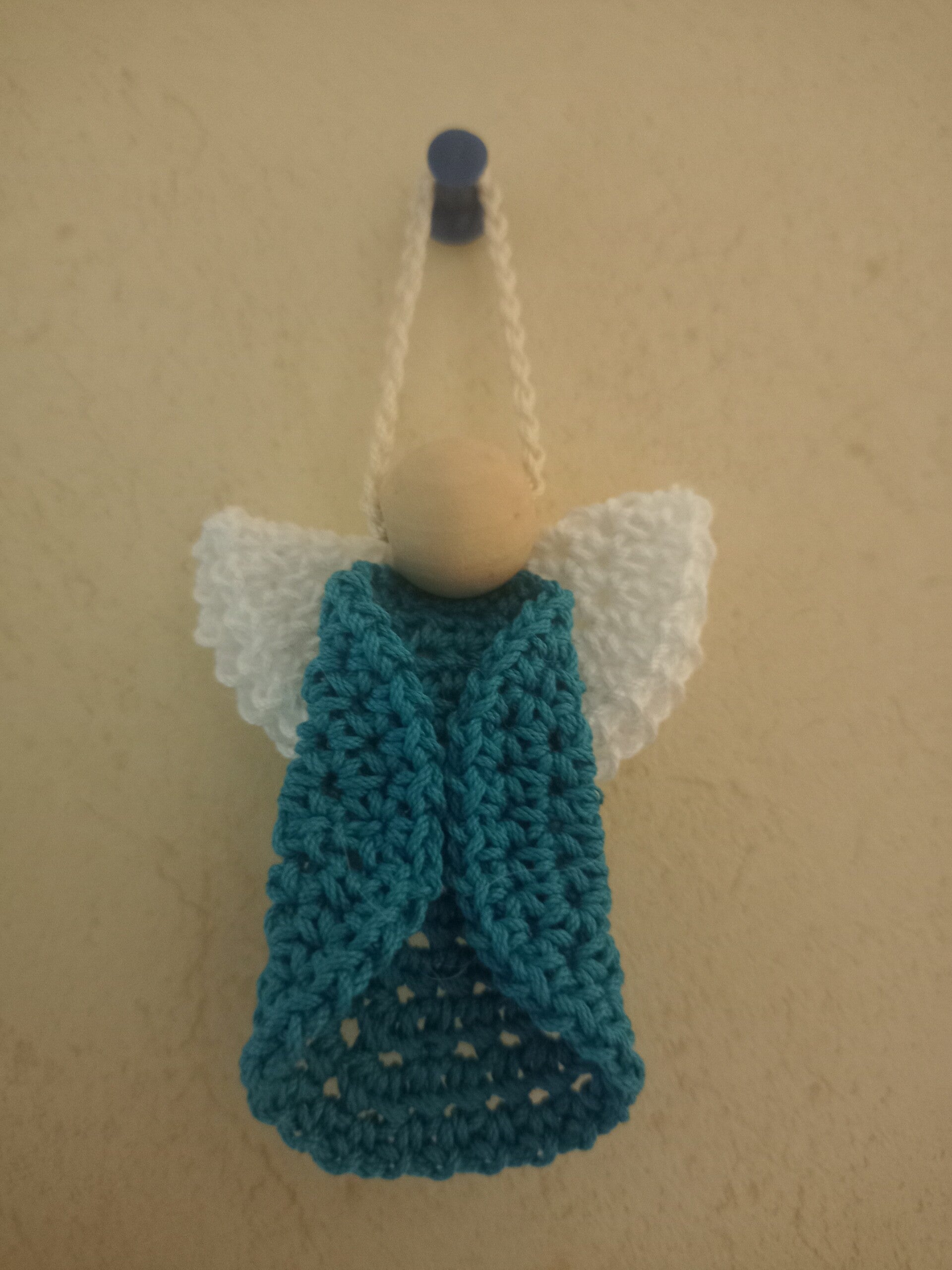 Petit ange fait main au crochet coton mercerisé + perle bois. Hauteur 8 cm Largeur 6 cm